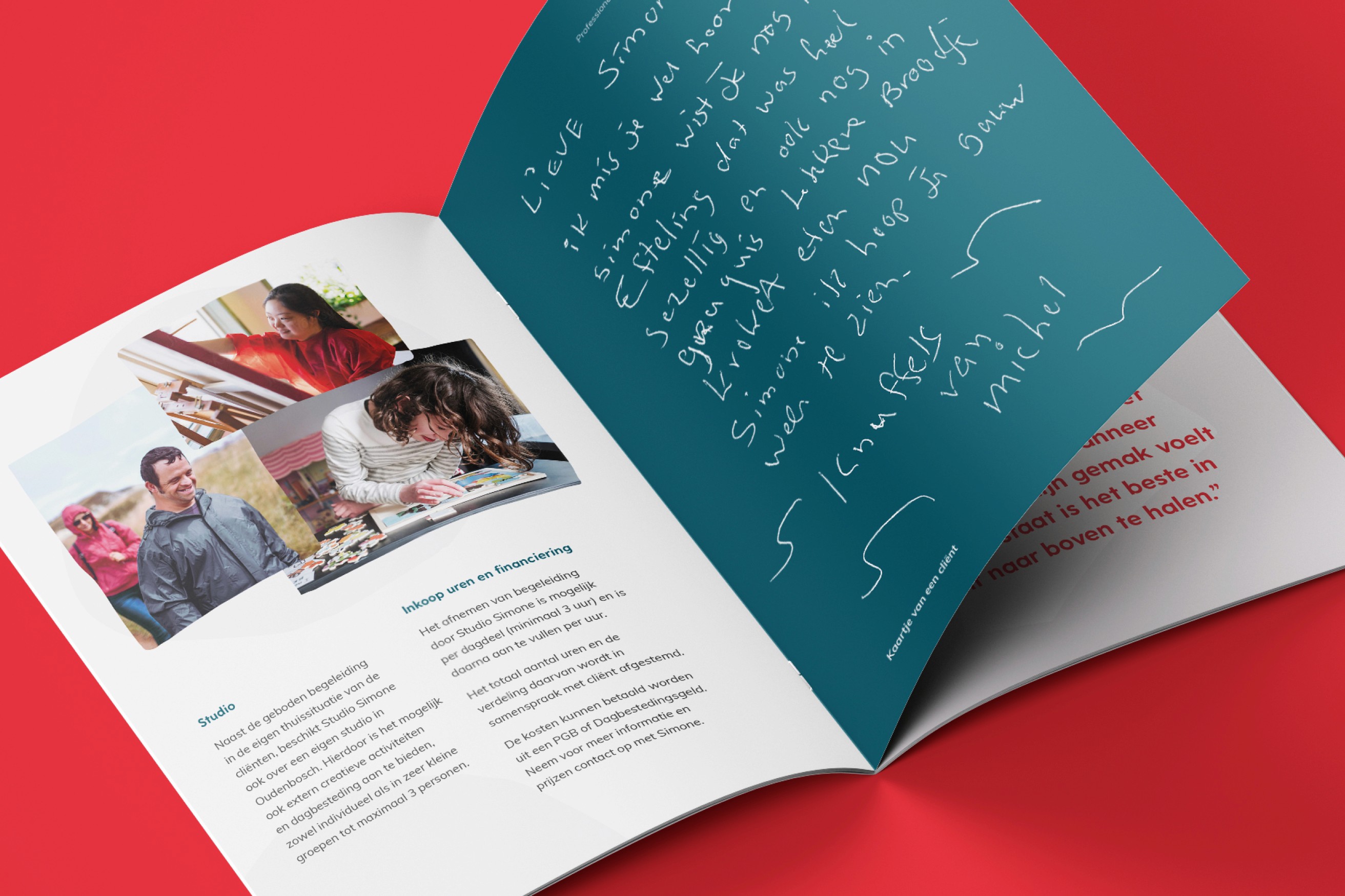 Studio Simone biedt professionele individuele begeleiding voor mensen met een verstandelijke beperking of psychiatrische aandoeningen. Cliënten ontdekken samen met Simone waar zij plezier en voldoening uit halen, van taarten bakken tot boeken schrijven.